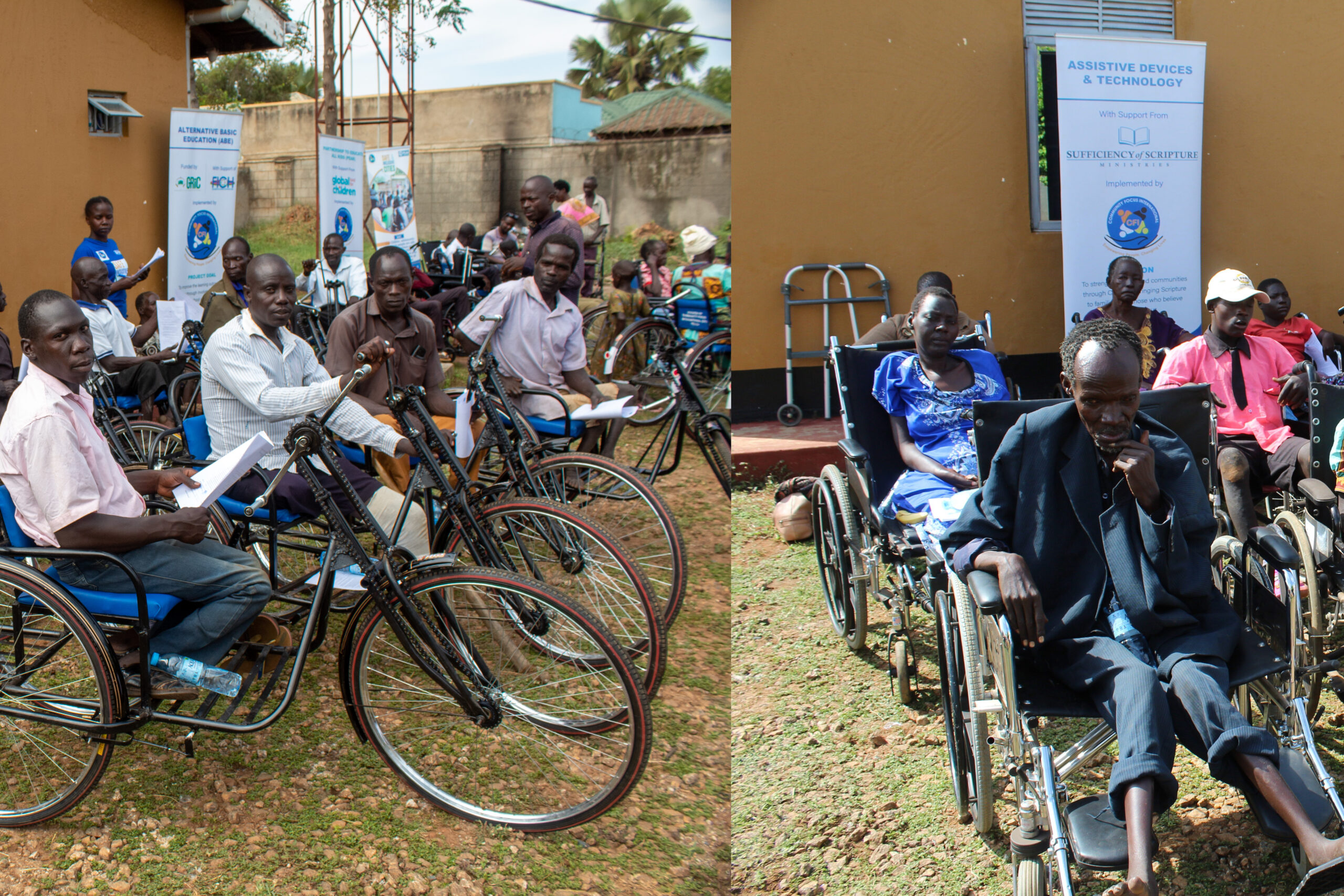 Pupils of Abunga and Orem primary school play on the locally made slides